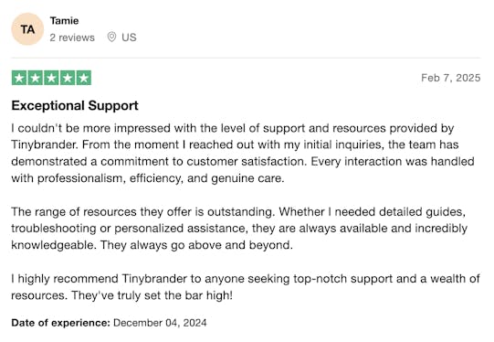 These testimonials reflect individual experiences and exceptional results. Your results may vary based on effort, market conditions, product selection, and other factors. The average TinyBrander user earns significantly less than the examples shown, and many users earn little to no income. These results are not typical and should not be considered guaranteed outcomes. No income guarantee is made or implied