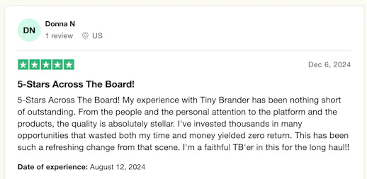 "I was terrified of the logistics, but TinyBrander made it so easy. I just focus on my clients and my content. They handle everything else. I'm now generating $8,000 in monthly recurring revenue."
