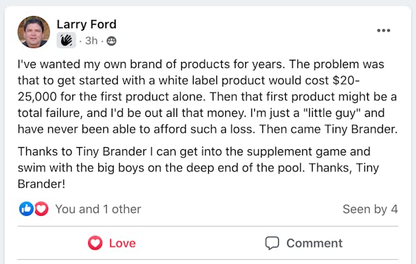 We will hand them back a totally finished shiny new profitable supplement brand.